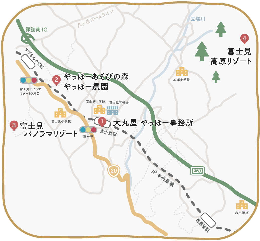 自然学校やっほーは、富士見町の大丸屋・森・キャンプ場を拠点に活動しています。