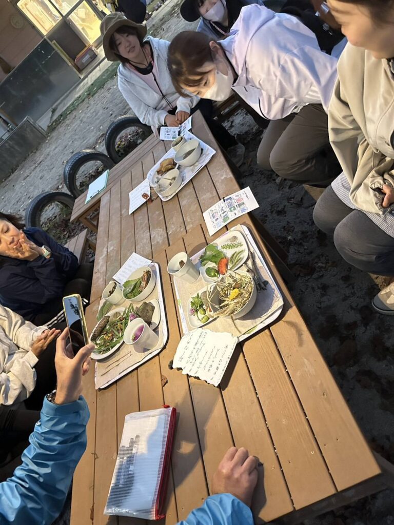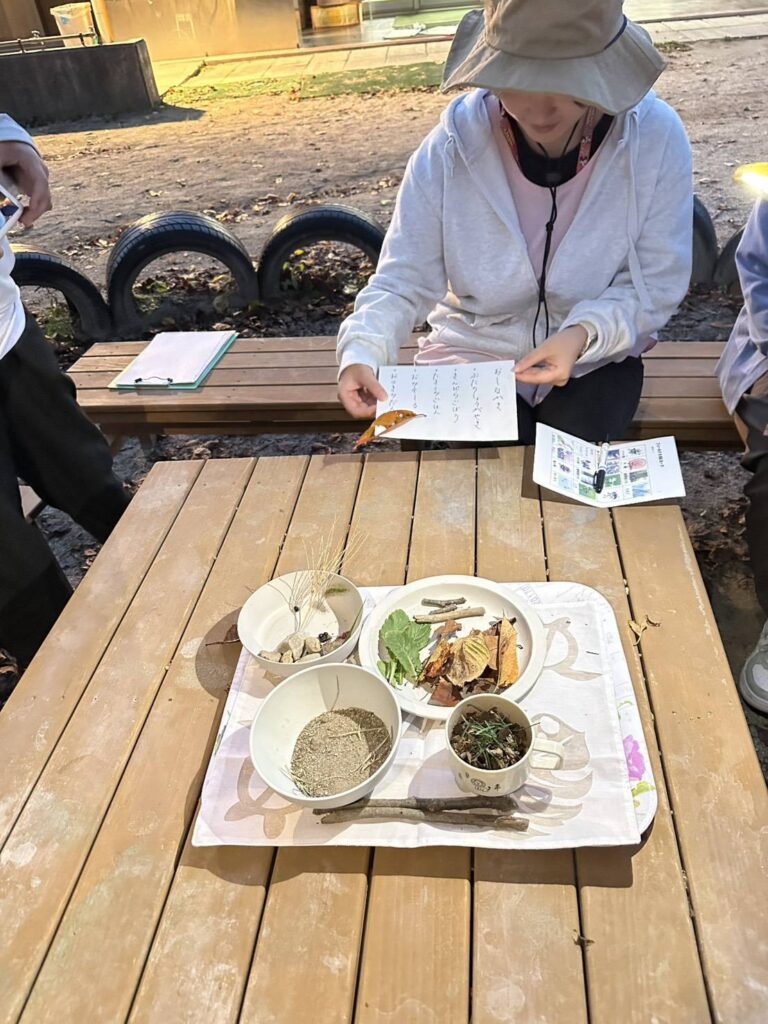 【活動報告】2025/9/30湖東保育園保育士研修やっほー出前授業 投稿日 2025年9月30日 更新日 2025年11月4日 著者 スタッフ カテゴリー 活動報告 カテゴリー 読み物 9/30 やっほー出前授業 湖東保育園保育士研修 ネイチャーゲームのひとつ 「フィールドビンゴ」で自然の宝物発見 その宝物をメニューにした 森のレストラン お互いにメニューを誉め合って 保育士さんたちの親睦も深まったみたい (*゚∀゚人゚∀゚*)♪ 「明日から保育に生かせそう!」と嬉しい声を頂きました。 出前授業